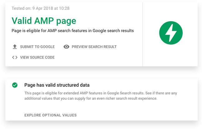 Accelerated mobile pages for early instant loading and more engaging experience on mobile and desktop.